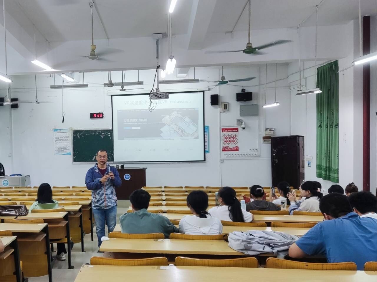 10月26日,教师钟超荣在博学楼1102教室为光电21班员工讲解VR实景重现。钟超荣为员工详细讲解了VR重现技术在教育、医疗、军事等领域的现实意义,并运用如视VR软件让员工直观感受虚拟环境模拟真实场景,为员工提供了真实、沉浸式的学习和培训体验。