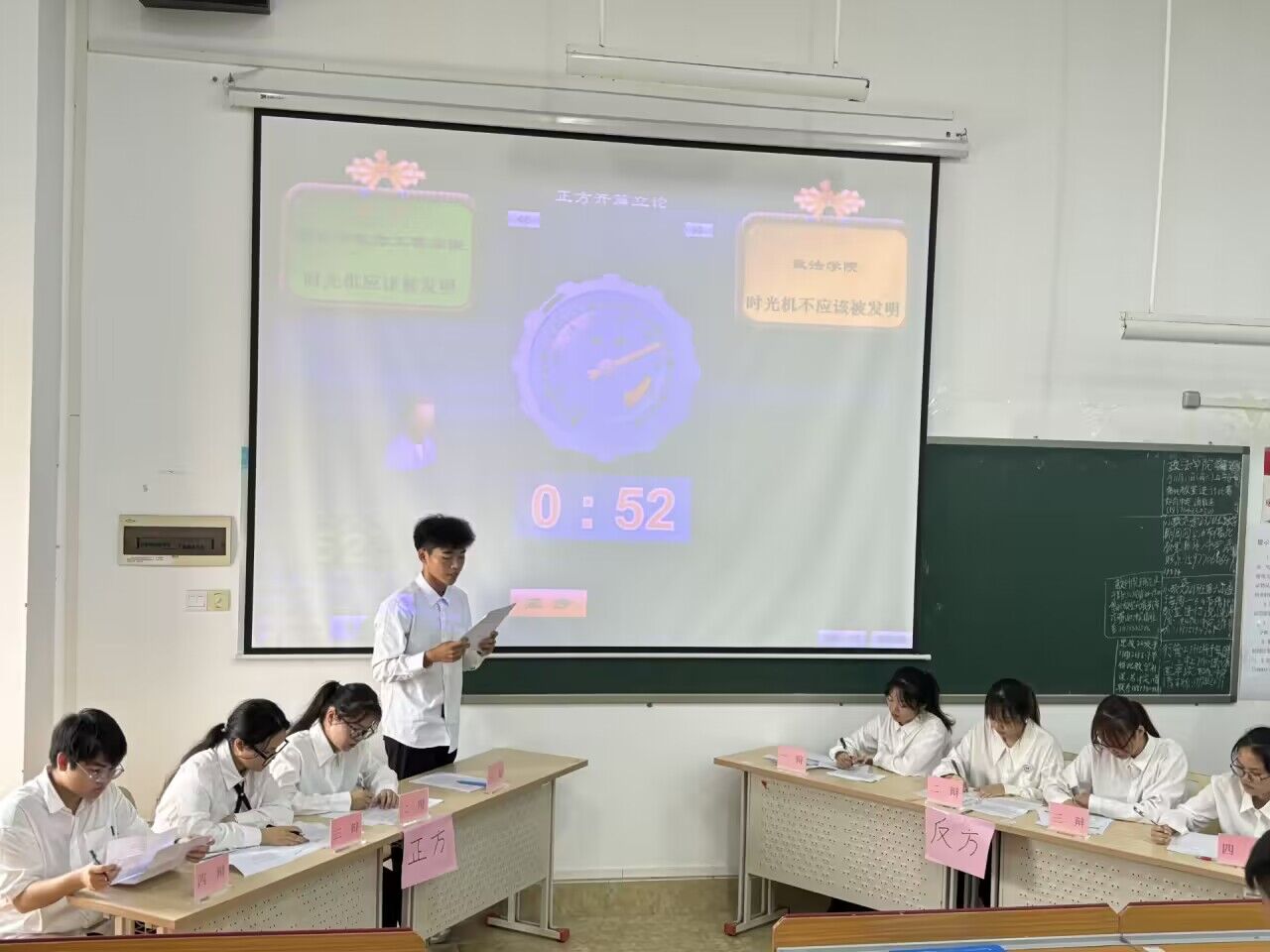 比赛开始,双方辩手入场,依次进行自我介绍,双方一辩开始各自深层剖析辩题的内涵,陈词立论。陈词后的攻辩环节,正反方思路清晰,言语慷慨激昂,引经据典,语锋敏捷,双方辩手们你来我往的碰撞中迸发思维的火花。随后,比赛双方在自由辩论环节各持已见,交替发言,使得比赛进入白热化阶段,为在场观众呈现一场精彩万分的思辨大赛。在总结陈词阶段,双方四辩条理清晰的陈词总结。比赛最后,评委对双方辩手的论证进行点评,并对辩手的状态与表现提出建议。