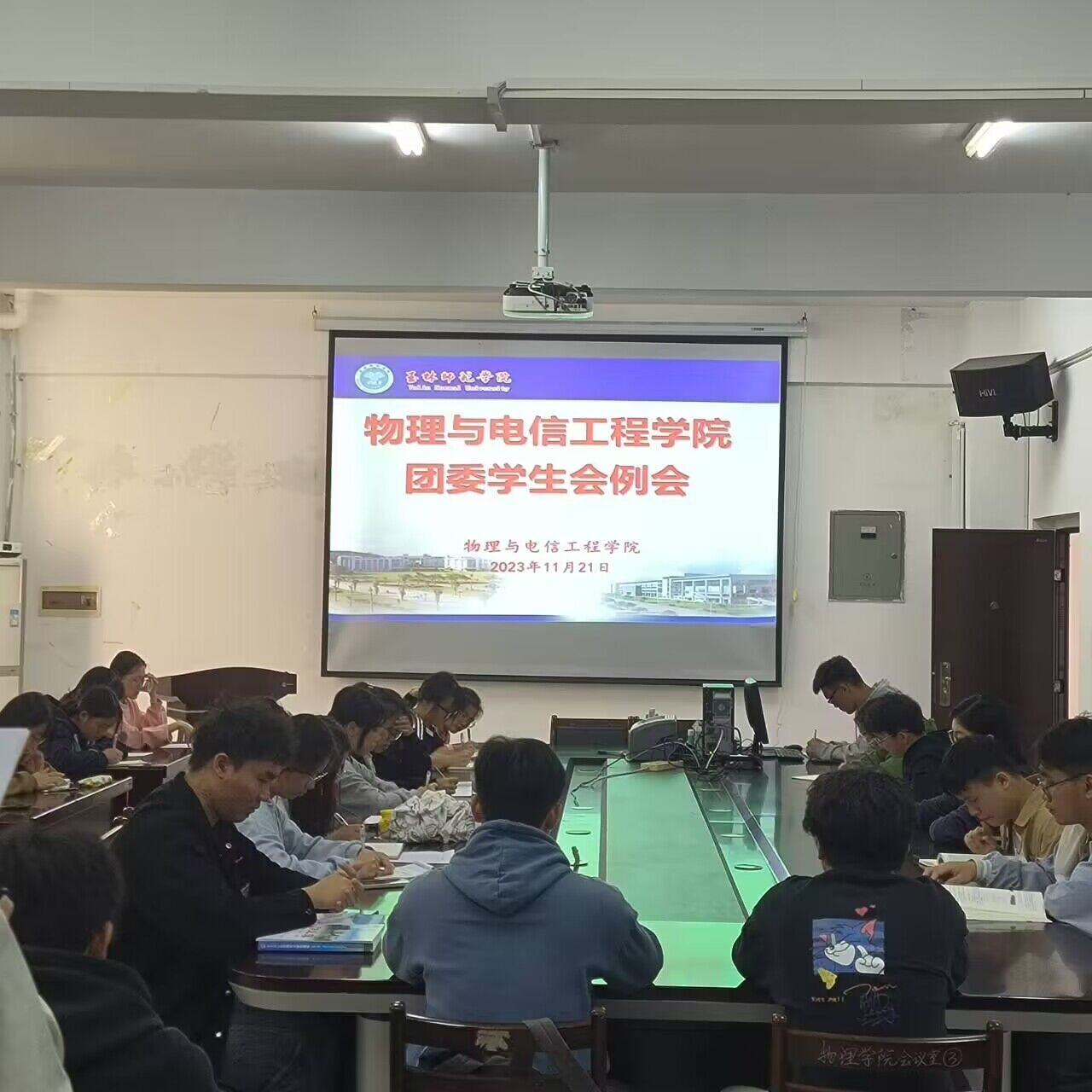 11月21日上午,公司在公司东校区物电楼BG221会议室召开团委员工会全体院干工作例会。公司辅导员黎莹、第五届团委员工会全体主席团成员、各部门负责人及部门工作人员参加例会。会议由辅导员黎莹主持。