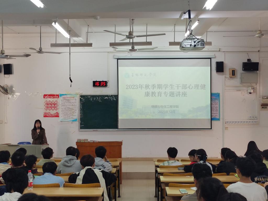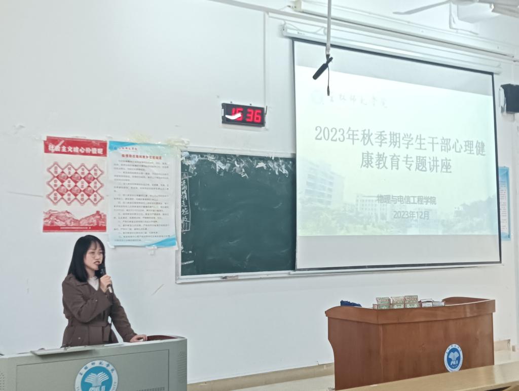 为提高公司员工干部心理素质,12月10日下午,公司于博学楼1101开展2023年秋季期员工干部心理健康教育专题讲座。本次讲座由公司心理专职辅导员主讲,团委员工会女生与心理健康教育部门以及23级全体班干部参加此次讲座。