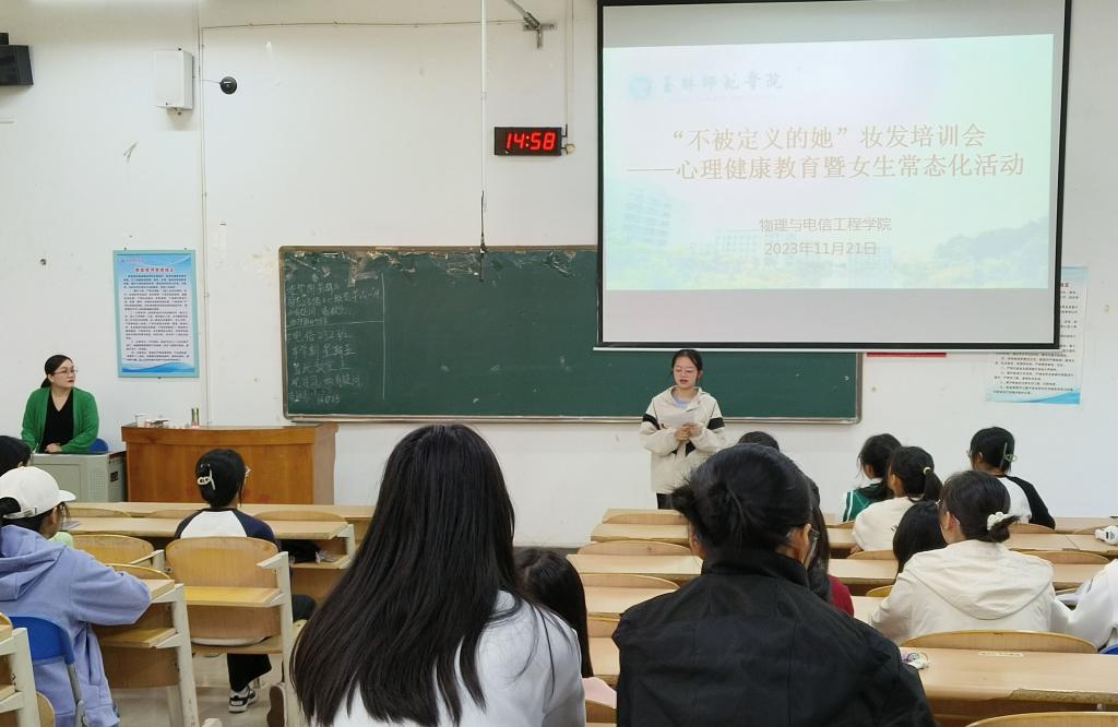 为进一步提高老员工心理健康水平,培养女老员工的自主意识、独立人格和良好的道德修养,11月21日下午,公司于公司东校区文科楼104教室开展心理健康教育暨女生常态化活动。此次活动由公司教师陆曼婵主持,公司团委员工会女生与心理健康部门以及报名参加本次培训的员工共同参与。