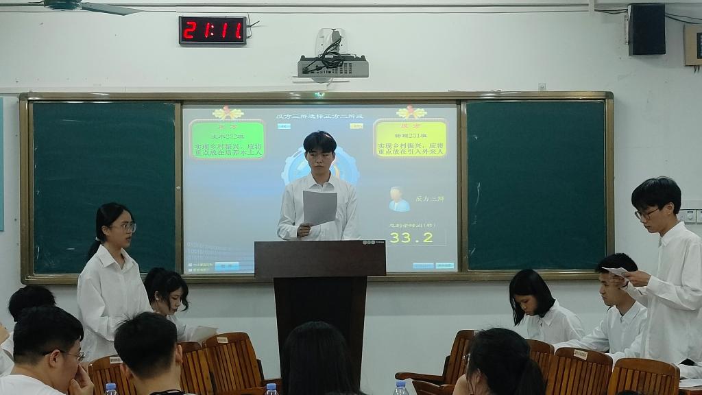 经过初赛、小组赛、半决赛等为期一个多月的层层选拔和激烈争夺,共有八个班级队伍进入决赛。开篇立论环节,双方辩手分别阐述己方观点,立场鲜明,为接下来攻辩环节铺好路、把好舵。