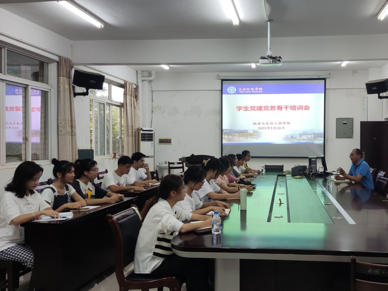 为进一步提升党建骨干的工作水平,抓实抓细抓好党务工作,9月26日,物理与电信工程学院在公司东校区物电楼BG221会议室召开员工党建党务骨干培训会。公司专职组织员龙有志,全体党建骨干参加此次会议。会议由龙有志主持。