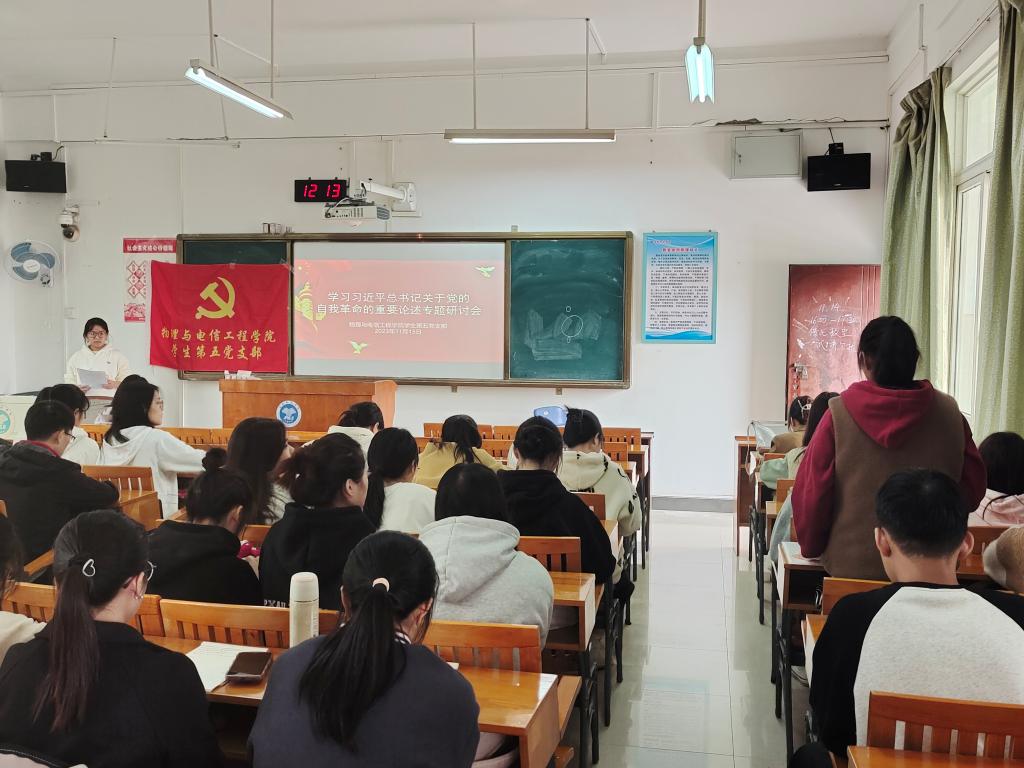 11月15日,太阳成tyc33455ccwww员工第五党支部在公司东校区文科楼205教室开展学习习近平总书记关于党的自我革命的重要论述专题研讨会。该支部全体党员同志参加此次会议,会议由支部副书记主持。