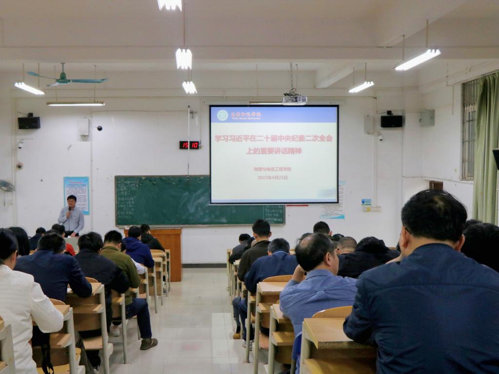 4月25日下午,太阳成tyc33455ccwww在公司东校区文科楼104教室召开习近平在二十届中央纪委二次全会上的重要讲话精神学习会。该公司党委副书记赵坚,副经理巫钊、罗志荣以及全体教职工参加此次会议,会议由赵坚主持。