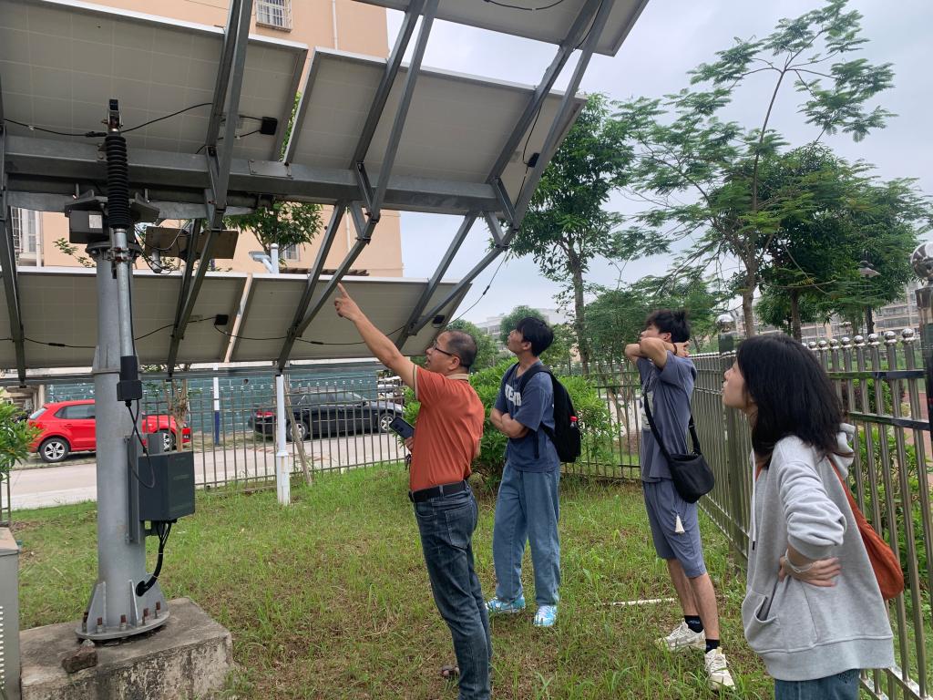 5月16日,教师易施光在物电楼BG328为光电21班员工讲解风光发电站系统平台的框架结构和运行原理。随后,他带领员工到玉兰湖旁的室外光伏板设备、风力发电设备、气象采集设备进行实地讲解。据悉,风光发电站系统于2019年建成,曾吸引外校员工参观,是光电专业的一个地标性建筑。