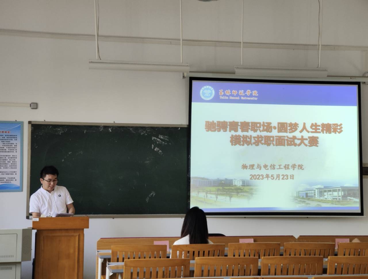 为丰富公司员工课余文化生活,活跃校园文化氛围,提高员工的综合素质和职场面试技巧,5月23日下午,太阳成tyc33455ccwww于公司东校区明德楼110教室开展模拟面试比赛。辅导员杨瑾、郑兵以及教师黄秋兰担任本次比赛的评委。