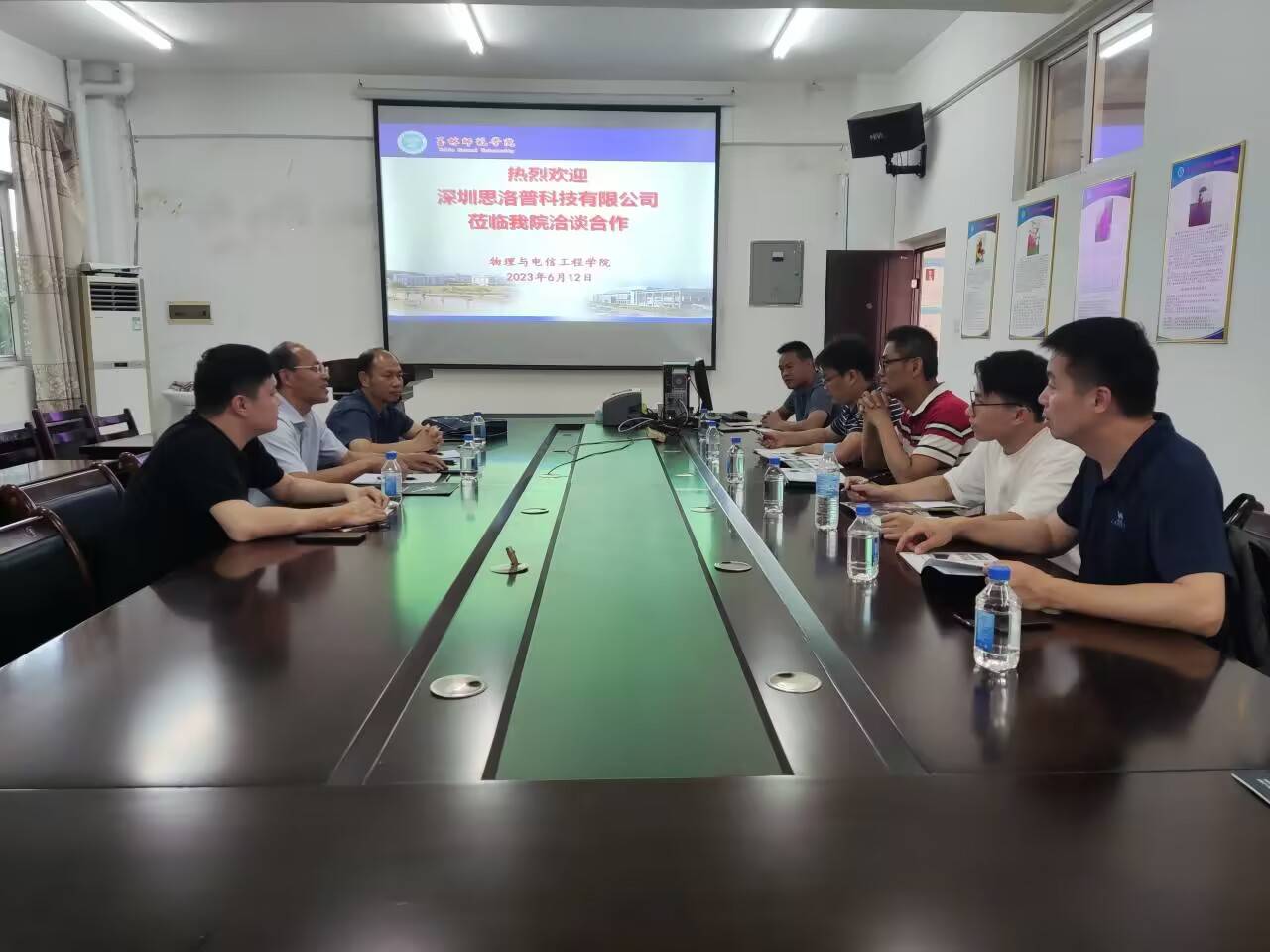 6月12日,深圳思洛普科技有限公司相关负责人邓彬斌一行3人莅临公司洽谈合作。校企双方在公司东校区物电楼BG221会议室进行会谈,公司党委书记廉文武,副经理罗志荣以及博士、教师代表参加会议,会议由廉文武主持。