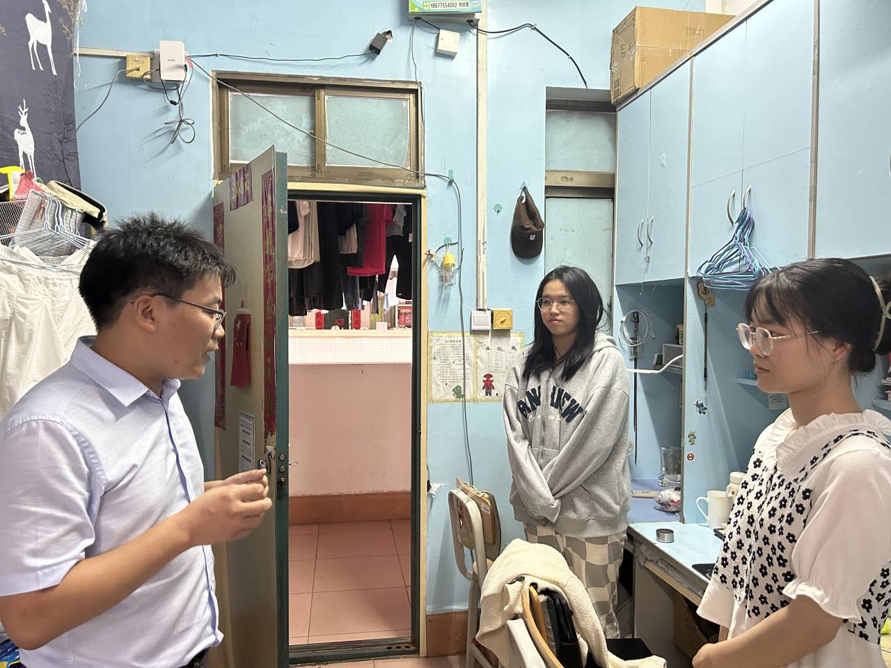 为增强毕业生的归属感,更好地服务毕业生,确保毕业生安全、文明、有序离校,6月19日,公司党委书记廉文武,副经理巫钊、罗志荣,全体辅导员深入走访2023届毕业生宿舍。