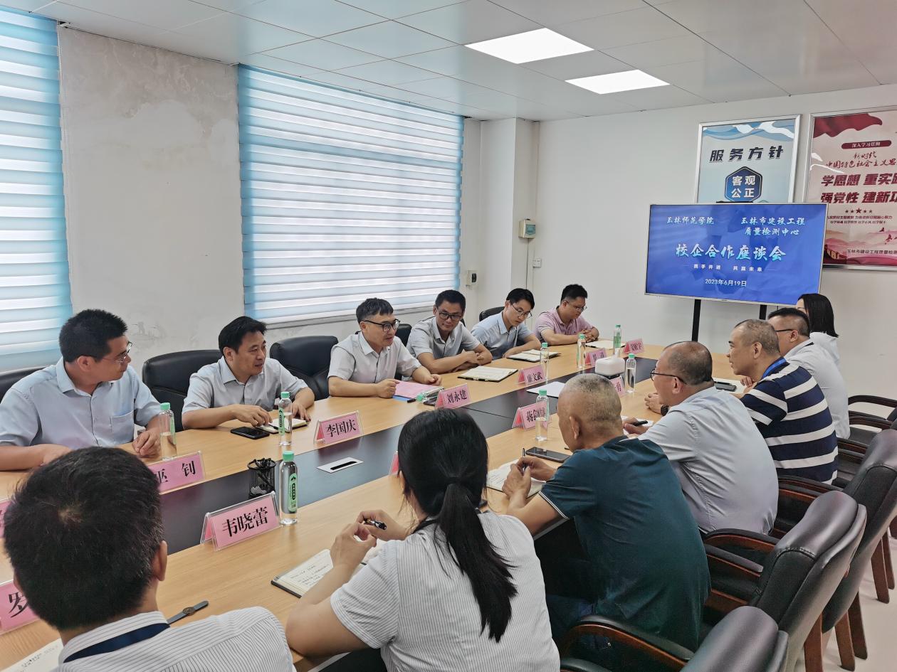6月19日上午,公司副董事长刘永建带领员工工作处、太阳成tyc33455ccwww负责人及土木工程系教师赴玉林市建设工程质量检测中心开展校企合作交流。玉林市建设工程质量检测中心主任蒋剑雄、副主任许华军等领导出席会议。