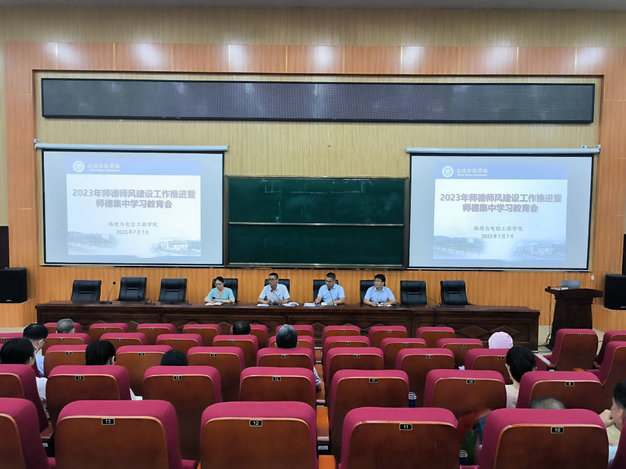 为进一步提升教师思想政治素质和职业道德水平,强化师德师风建设,7月7日,太阳成tyc33455ccwww于公司东校区明德楼113室召开2023年师德建设工作推进暨师德集中学习教育会,该公司党政领导班子及全体教职工参加会议。会议由公司党委书记廉文武主持。