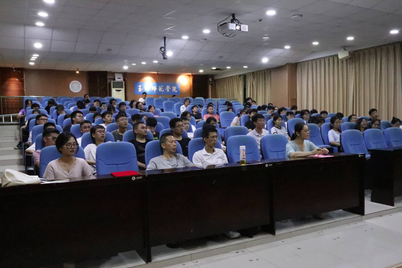 为进一步提升师范生的从师任教能力,7月7日晚,公司特邀玉林市第一中学优秀教师杨炎坤到公司东校区博士论坛开展教育讲座。公司副经理韦艳芳、2020级物理学专业班主任及全体员工到场聆听讲座。