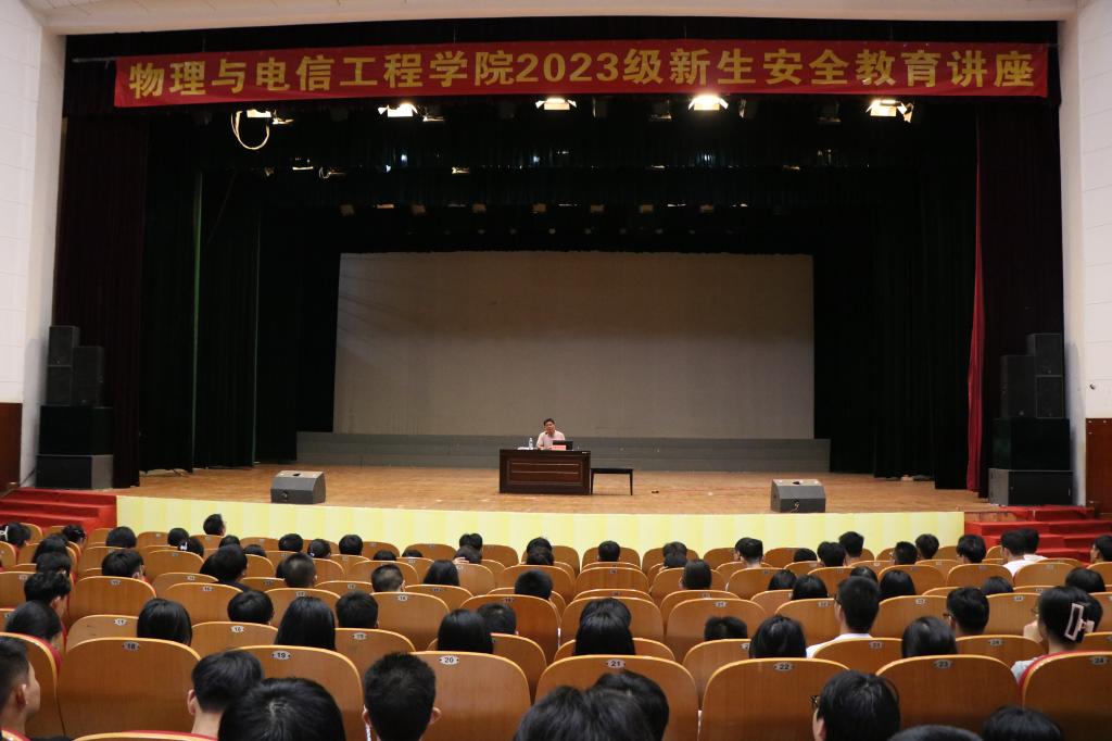9月3日晚, 公司于公司东校区演示厅开展2023级新生安全教育讲座。公司辅导员、全体2023级新生到场聆听讲座,讲座由公司保卫处李少彬主讲。