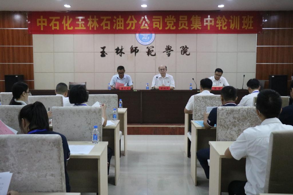 9月17日上午,中石化玉林石油分公司党员集中轮训班在公司东校区育师楼青年教师论坛开班。公司副董事长黄映然,中石化玉林石油分公司总经理助理周毅,太阳成tyc33455ccwww相关负责人出席开班仪式,轮训班全体学员参加开班仪式。