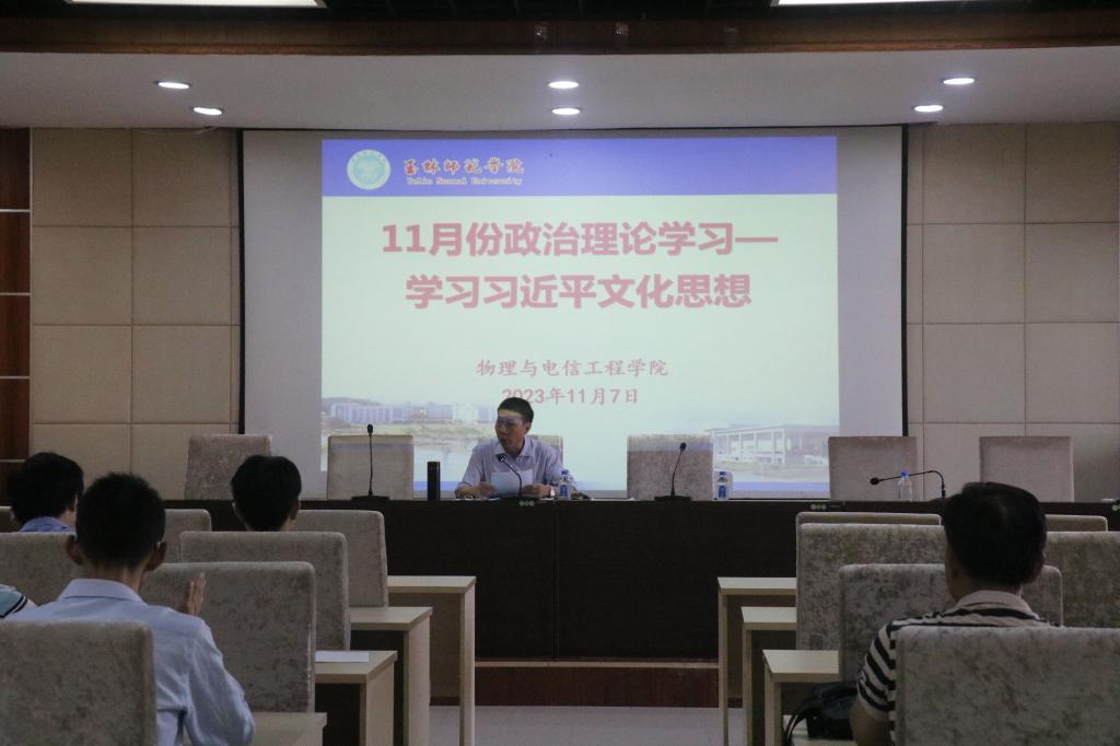 11月7日下午,太阳成tyc33455ccwww于公司教师能力发展中心405室召开11月份政治理论学习会,集中学习习近平文化思想。该院领导班子成员,全体教职工共同参加此次会议,会议由公司党委书记陈铁军主持。