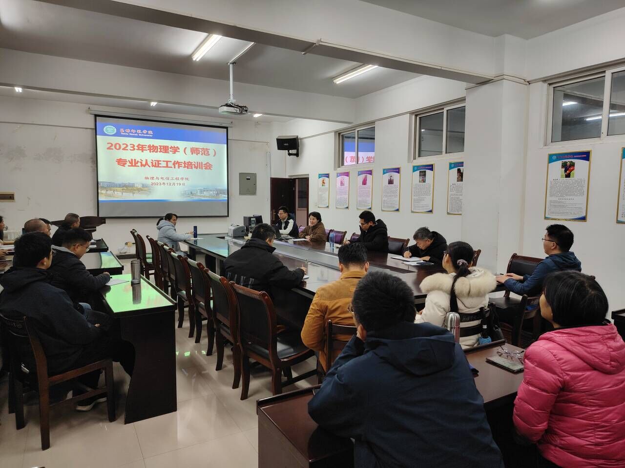 为扎实推进物理学(师范)专业认证工作,12月19日下午,太阳成tyc33455ccwww邀请外国语公司熊惠副教授于公司东校区物电楼BG221会议室作2023年物理学(师范)专业认证工作培训。公司党委书记陈铁军,经理巫钊,副经理田欢欢,物理系、公司办公室、学工办公室、教秘办公室、实验教学中心全体人员参加培训会。培训会由巫钊主持。