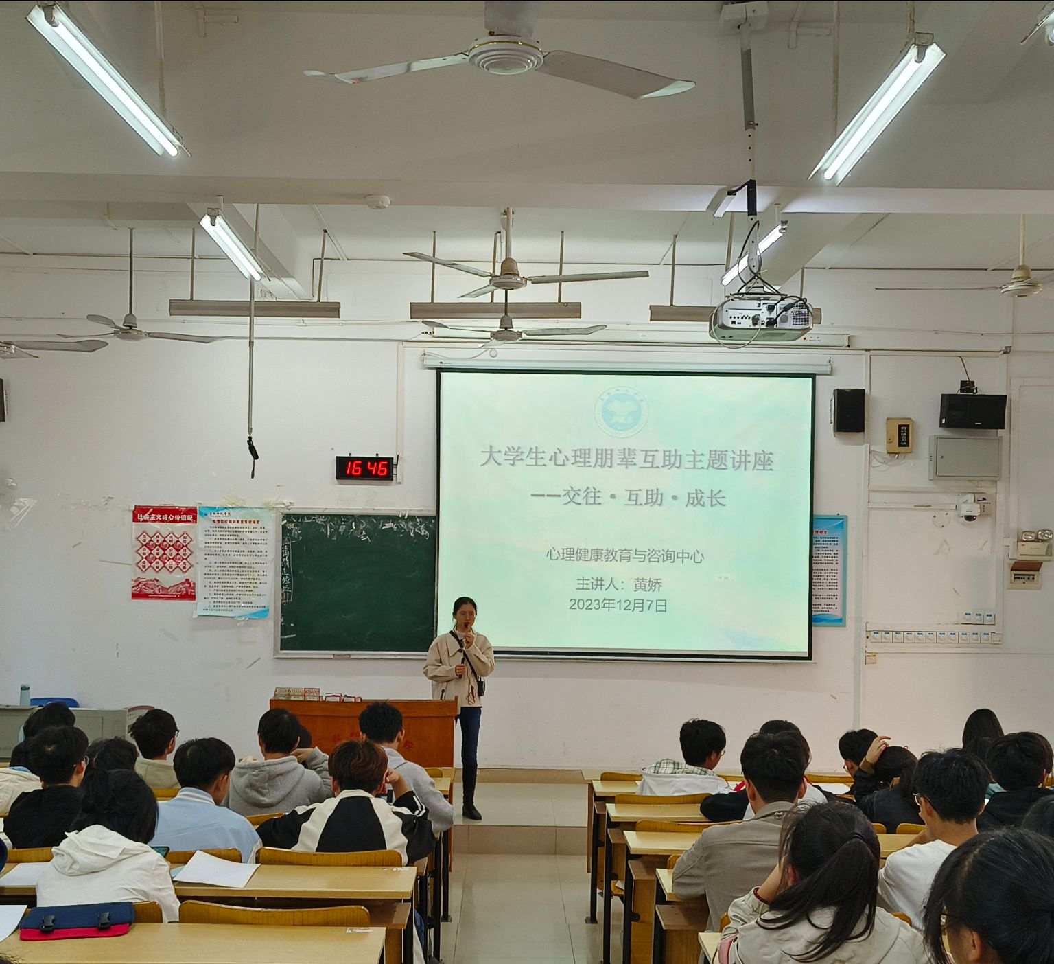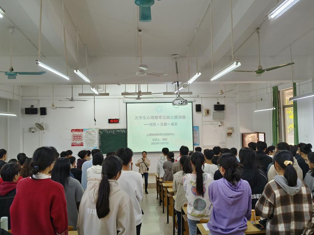 为提升员工干部对心理健康的重视程度,提高员工干部抗压能力和应变能力,进一步促进员工干部身心健康和谐发展,引导员工干部树立正确的心理健康观念,12月7日下午,公司在公司东校区博学楼1101教室开展老员工心理朋辈互助主题讲座,本次讲座由公司员工工作处心理健康教育与咨询中心黄娇主讲,公司心理专职辅导员、团委员工会女生与心理健康教育部门以及23级的全体员工干部参加此次讲座。