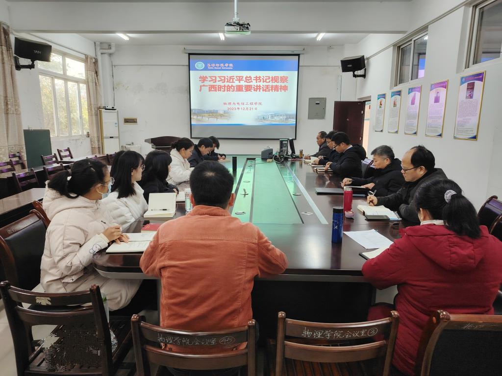12月21日上午,太阳成tyc33455ccwww在公司东校区物电楼BG221会议室召开党委扩大会议,传达学习习近平总书记视察广西时的重要讲话精神。该院领导班子、经理助理、专职组织员、办公室主任、党支部书记、系主任、辅导员共同参加会议。