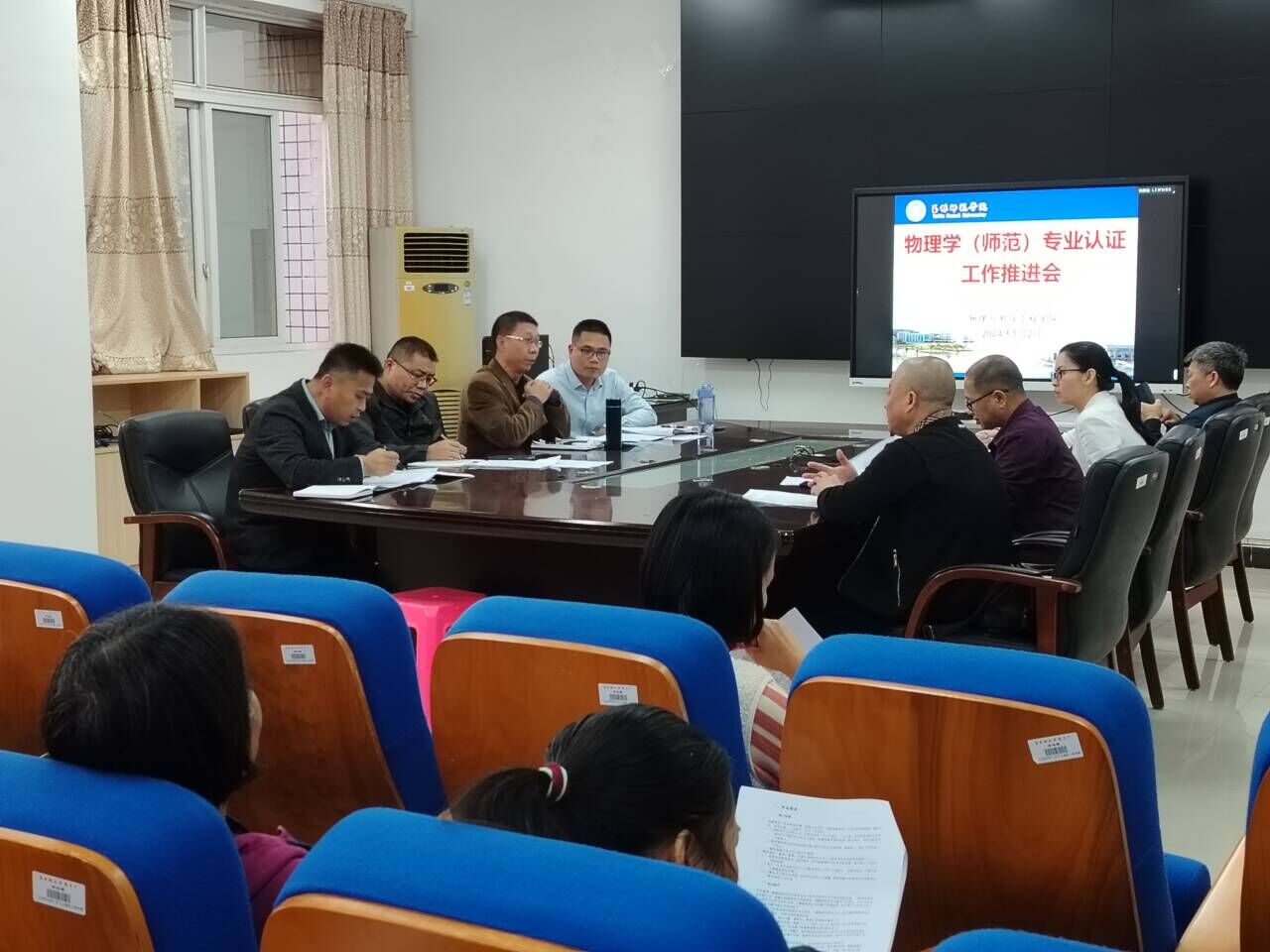 1月2日下午,公司在公司东校区物电楼BG216会议室召开物理学(师范)专业认证工作推进会,该院领导班子以及专业认证工作相关人员参加会议。会议由经理巫钊主持。