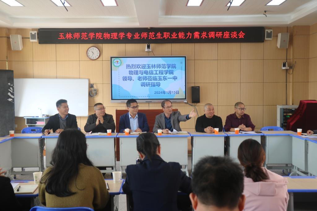 1月15日上午,公司经理巫钊一行赴玉林市玉东新区第一初级中学开展物理学专业师范生职业能力需求调研工作,受到了玉东一中董事长黄超等公司领导和骨干教师的热情接待。