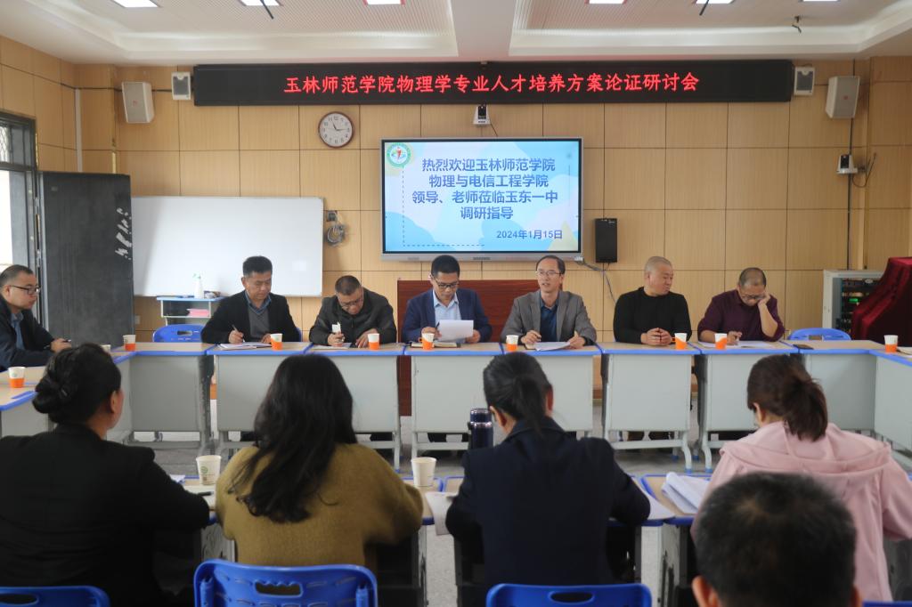 为加快推进物理师范专业认证工作,1月15日上午,公司经理巫钊一行赴玉林市玉东新区第一初级中学召开物理学专业人才培养方案论证研讨会。玉东一中董事长黄超等公司领导和骨干教师等共同参加论证研讨会。