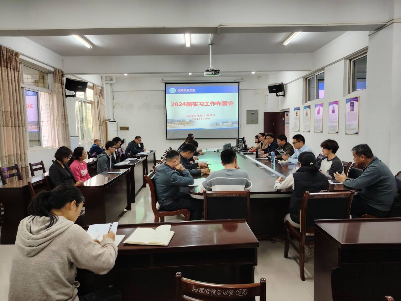 1月19日上午,公司于公司BG221会议室召开2024届毕业生实习工作布置会。公司党委书记陈铁军,经理巫钊,党委副书记兼副经理覃艳超,副经理罗志荣以及各教研室主任,毕业年级辅导员、班主任,负责就业工作辅导员共同参加会议。会议由陈铁军主持。