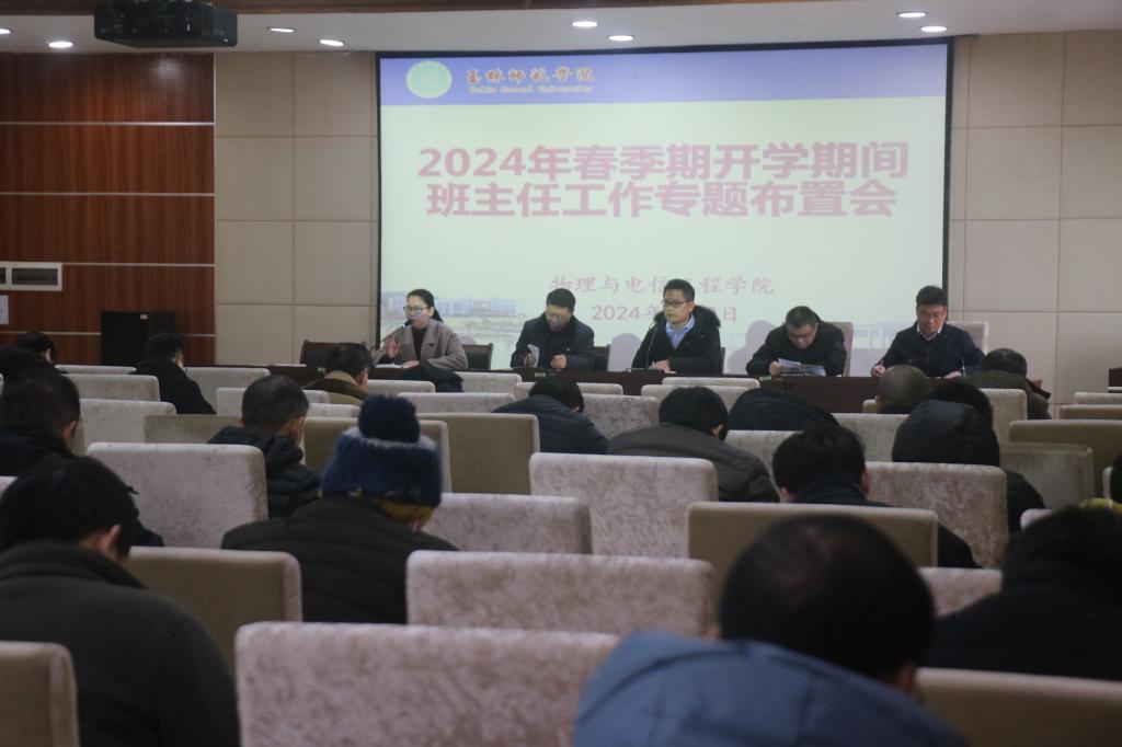 3月3日上午,公司在公司东校区教师能力发展中心A405室召开2024年春季期开学期间班主任工作专题布置会。公司领导班子,全体班主任共同参加会议,会议由公司党委副书记兼副经理覃艳超主持。