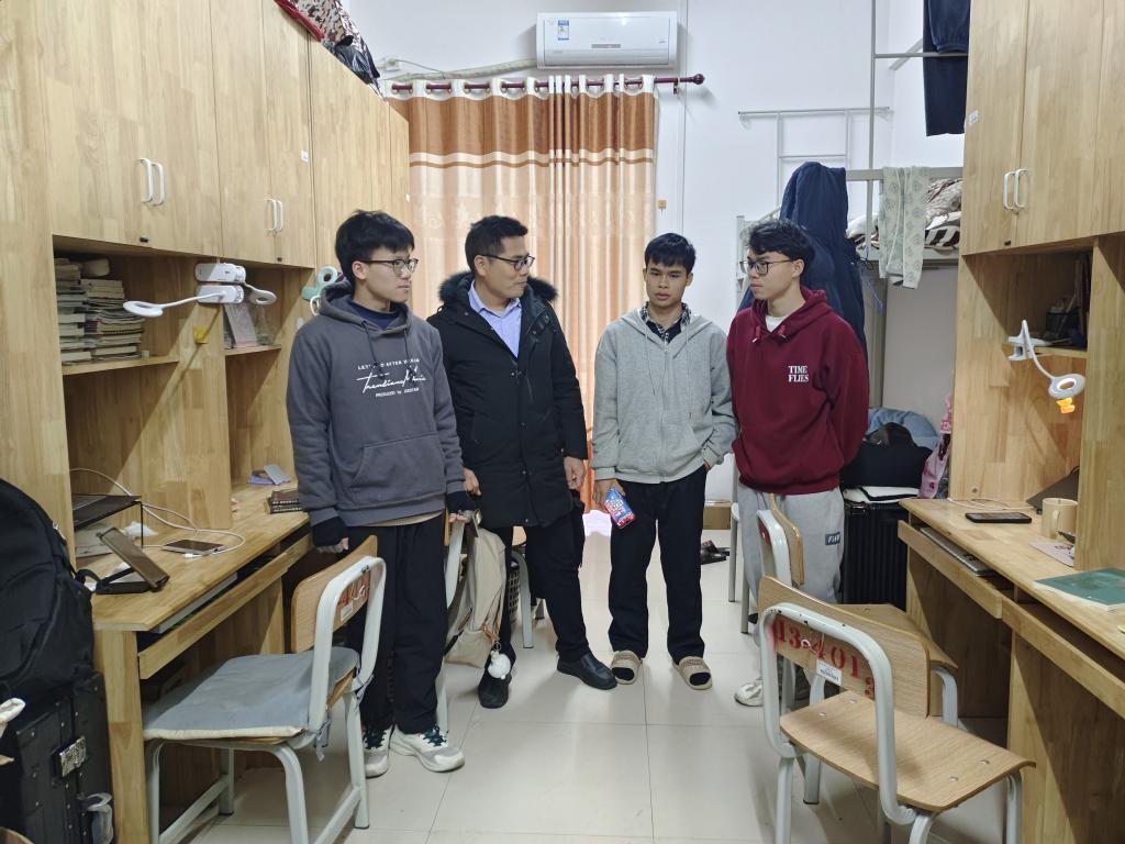 为深入了解员工的开学状态,切实做好新学期员工管理与服务工作,3月3日下午,公司党委书记陈铁军,经理巫钊,党委副书记兼副经理覃艳超,副经理罗志荣、田欢欢、张文杰,全体辅导员深入走访检查员工宿舍,关怀返校员工。