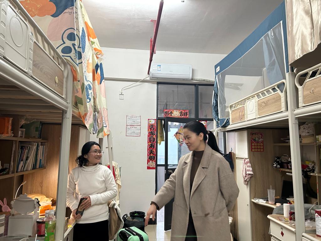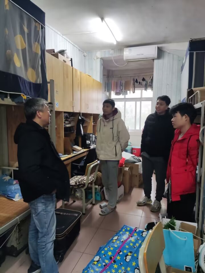 此外,公司领导与辅导员还检查了宿舍卫生状况,排查了宿舍安全隐患,叮嘱员工提高安全防范和自律意识,安全用电,保持宿舍内务干净整洁,营造更加安全、文明、舒适的学习生活环境。
