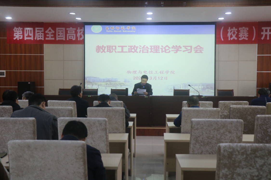 3月12日下午,公司在公司东校区育师楼四楼青年教师论坛召开教职工政治理论学习会。公司领导班子成员,全体教职工参加会议。公司党委书记陈铁军主持会议。