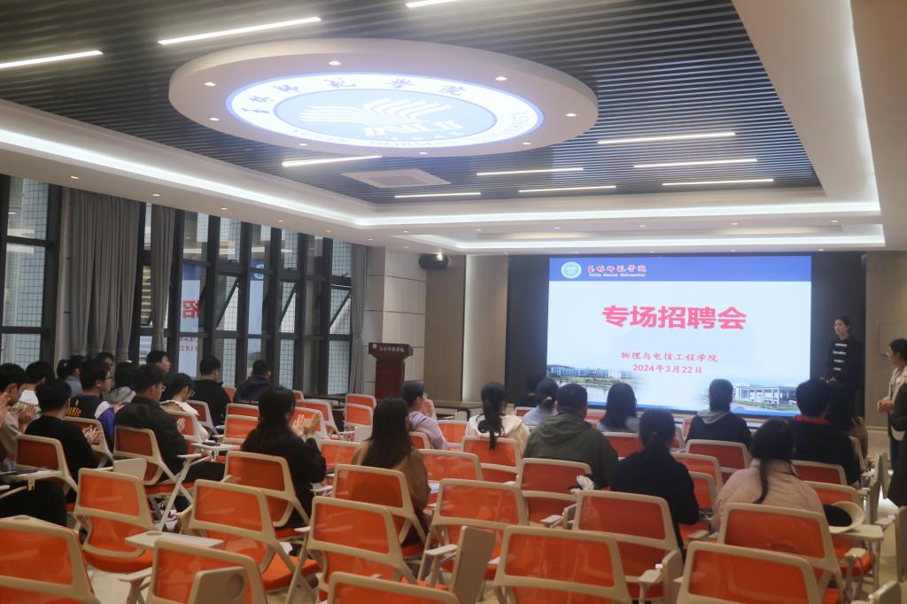 3月22日上午,北海市六禾电子有限公司到公司开展专场招聘会,招聘会在公司东校区崇德楼C-109路演大厅举行。北海市六禾电子有限公司主任苏珠洁、公司党委副书记覃艳超、辅导员以及求职毕业生等参加本次招聘会。