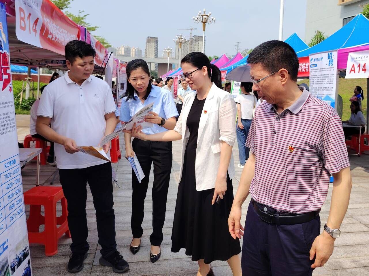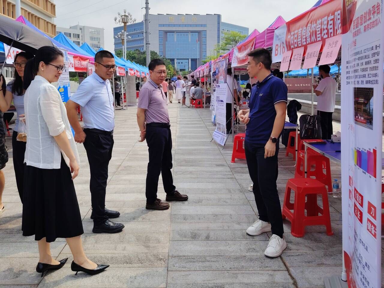 4月26日上午,公司2024届重点群体毕业生就业帮扶双选会于东校区新民楼景观大道举行。公司党委书记陈铁军,经理巫钊,党委副书记覃艳超一行深入招聘会现场指导公司毕业生就业。