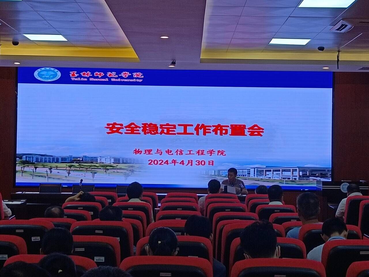 对下一阶段的安全稳定工作,陈铁军提出三点要求:一是提高政治站位,扛牢政治责任,进一步加强安全管理,全院上下务必全力做好安全稳定工作。二是坚持问题导向、突出重点任务,切实做好安全风险隐患排查,落细落实各项安全防范措施;三是要加强组织领导,以常常牢记于心的责任感,统筹稳定发展与安全保障,努力提升该院师生的安全感、归属感,一起共建平安物电,安全玉师。