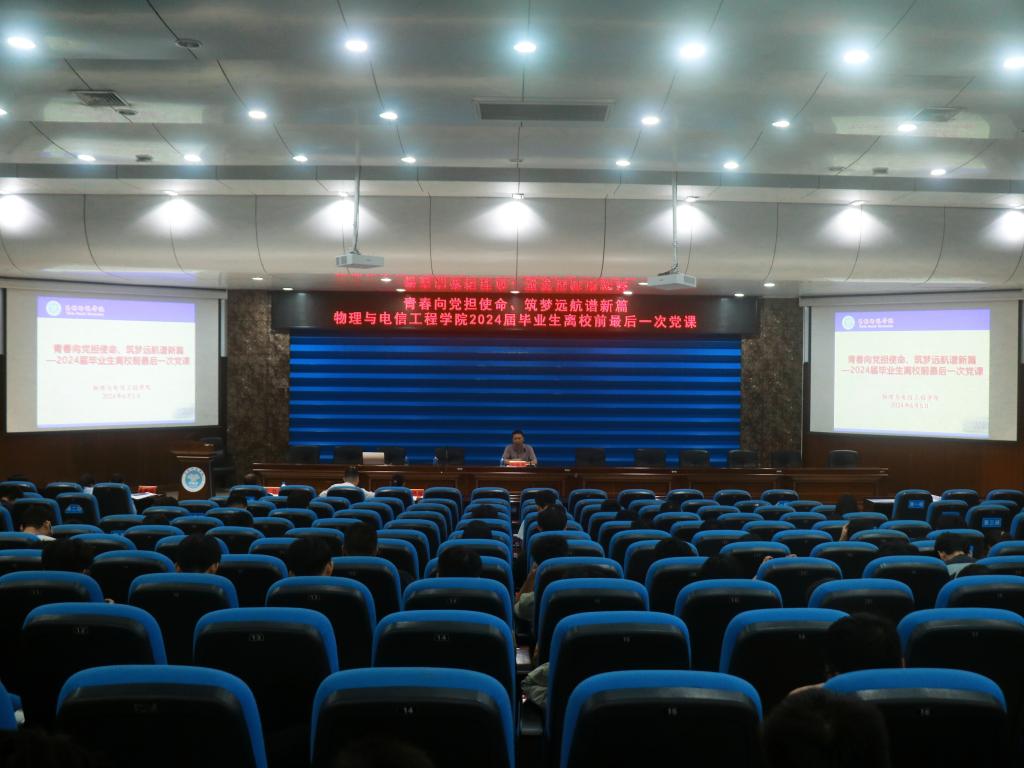 为引导毕业生党员切实增强党性修养,在学思践悟中坚定理想信念,坚定不移听党话、跟党走,6月5日下午,公司于公司东校区学术报告厅开展2024届毕业生党员离校前最后一次党课,公司党委书记陈铁军、团委书记、辅导员以及2024届毕业生党员参加本次党课学习,会议由团委书记主持。