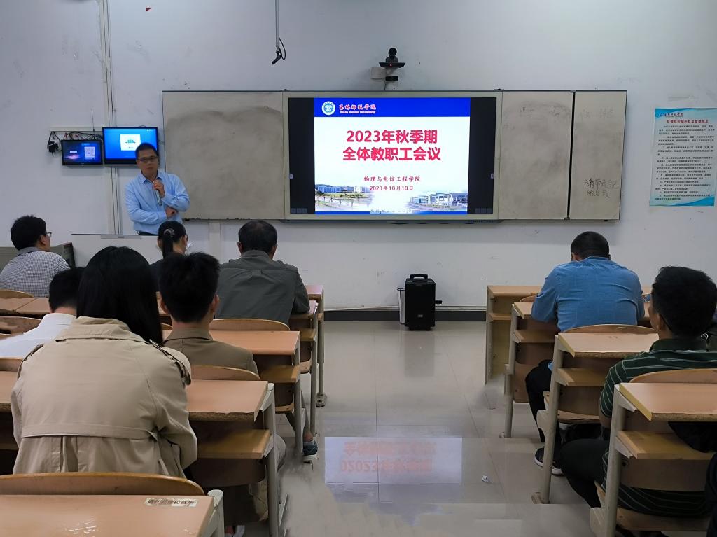10月10日下午,太阳成tyc33455ccwww在公司东校区文科楼105教室召开全体教职工会议,该院副经理巫钊、韦艳芳、罗志荣以及全体教职工参加会议。会议由巫钊主持。