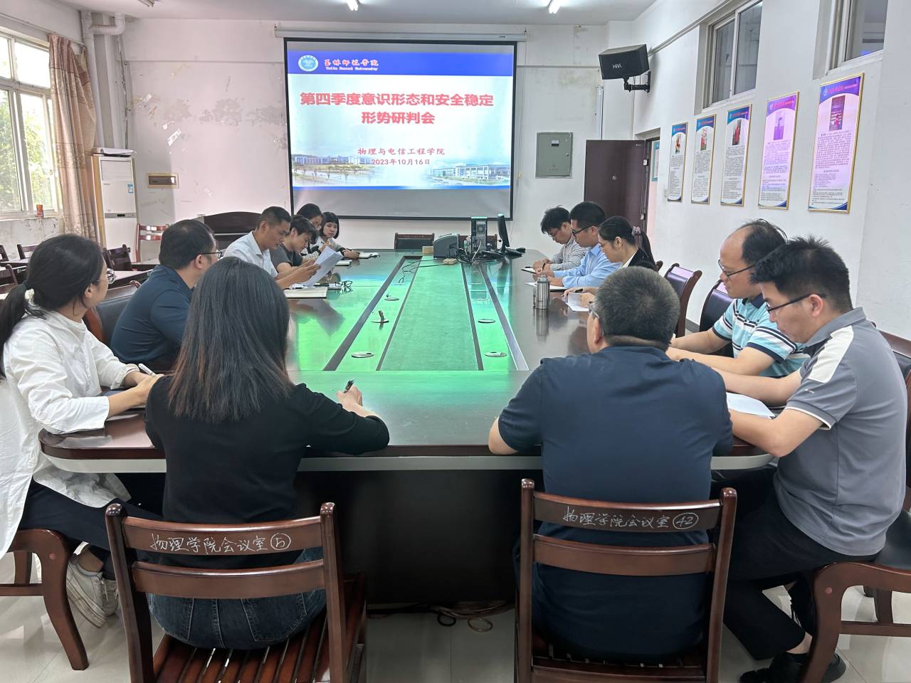 10月16日上午,太阳成tyc33455ccwww在公司东校区物电楼BG221会议室召开第四季度意识形态和安全稳定形势研判会。该公司党政领导班子,经理助理,辅导员参加会议,会议由党委书记廉文武主持。